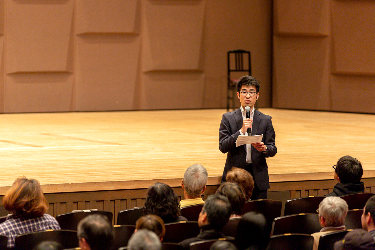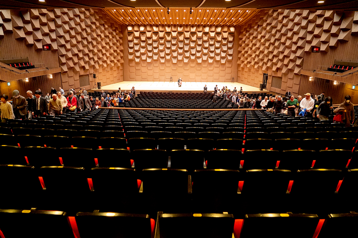 Inviting Hiroshi Kondo, the top cello top player of the Osaka Philharmonic Orchestra, not only to have several short phrases play in various places on the stage, but also participants moved to the seats on the first floor, behind the first floor, and the third floor to "listen" the sound of the sound. In addition, Takayuki Hidaka, who is involved in the sound design of theaters and halls at the Technical Research Institute of Takenaka Corporation, and Kosuke Kato, a researcher of acoustics, will explore the secrets of Festival Hall scientifically and physically.