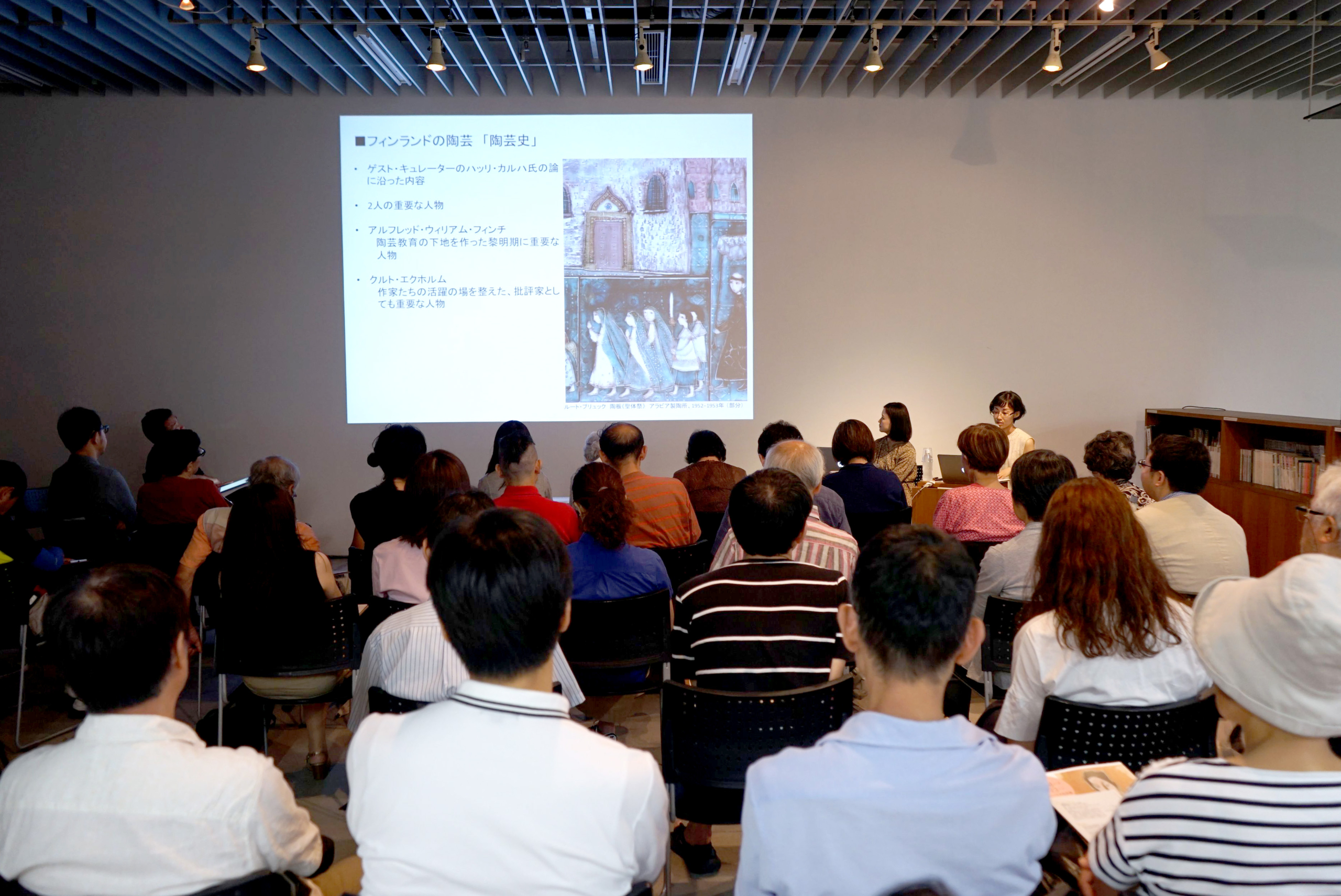 After Tomomi Miyakawa of The Museum of Oriental Ceramics, OSAKA introduced the trends in Finnish pottery in the 20th century, Yuko Ishino, who has been studying the nationalism movement between World War I and World War II in the country, discussed the relationship between Finnish social conditions and artistic expression from a historical perspective.