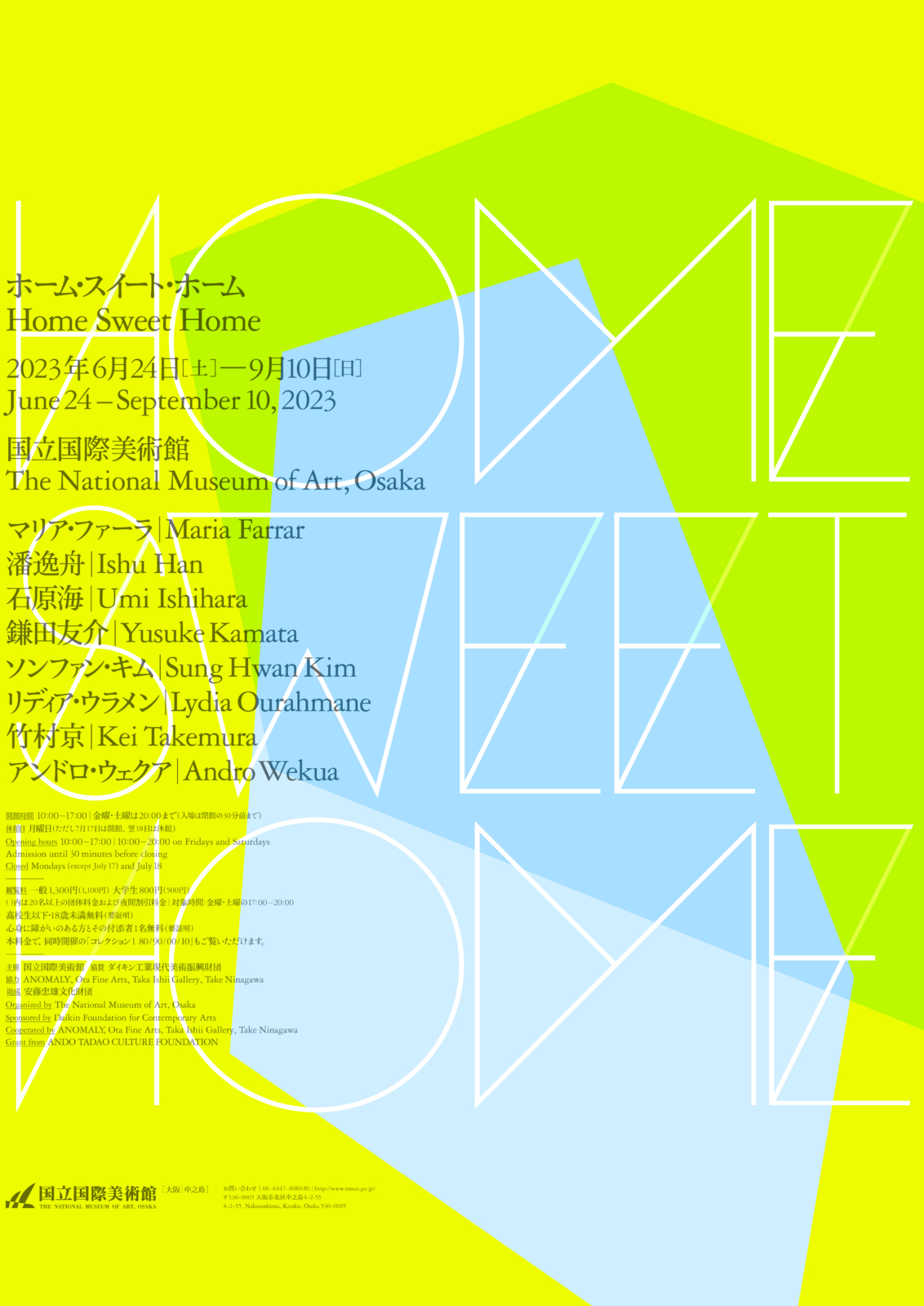 This exhibition focuses on works that deal with the theme of “home” by eight Japanese and international contemporary artists, including Andro Wekua and Kei Takemura. Based on keywords such as history, memory, identity, place, and family conditions and roles, these works shed light on the meaning on home, nation, and family as well as the changes and universality of the regions and societies that we are a part of. The exhibition’s title refers to the special comforts of home, and in viewing the works, we are likely to reflect on our own “home sweet home” within the context of bitter social realities.