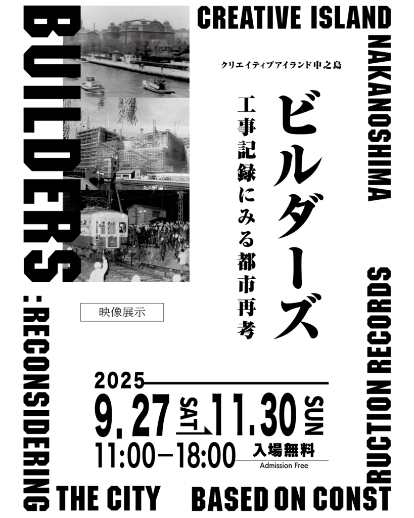 The video exhibition Builders: Reconsidering the City Based on Construction Records presents construction footage preserved by companies and other organizations. In particular, films from the 1930s, during the Greater Osaka era, and from the 1960s, during postwar reconstruction, capture not only the cityscapes of those times but also the civil engineering skills and physical labor of builders, along with the tribulations and triumphs of carrying out massive projects. These invaluable records offer a panoramic view of the area’s enduring urban vitality and the layers of memory accumulated over generations.