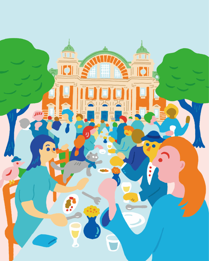 Around the long table that appeared in the middle of Nakanoshima, the symbol of the water capital Osaka,